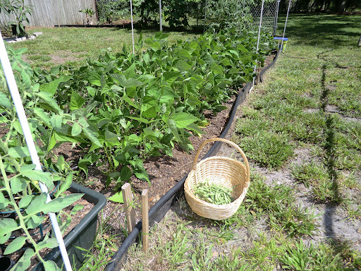 Honestly I think that God planned a mini-vacation for me. I rested, did some very satisfying sorting/cleaning projects, and spent happy hours outside in the oneacrewoods with my plants and the sunshine and fresh air. I didn’t go anywhere the whole weekend, except to show the condo one more time.  My house is such a beautiful place to be. I really should spend more time here. Hey, look at the beans first picking, and my pineapple farm….  I have about a dozen pineapples this year to share with the fruit rats and raccoons.