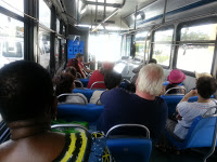 I had some interesting conversations both days with people from all around the area who had come out to the beach for the day. One lady I talked with turned out to be living in the mobile home park across the street from my house. Some people combine their bus ride with a bike section. They put their bike on the front carrier of the bus. I told one biker that I’d like to do that and he warned me to be flexible in my timing because there are only spaces for two bikes and sometimes you might be the third…
