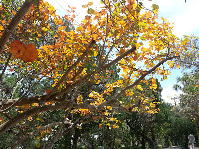 | sea grape trees turn gold/orange/purple and fall in the spring |