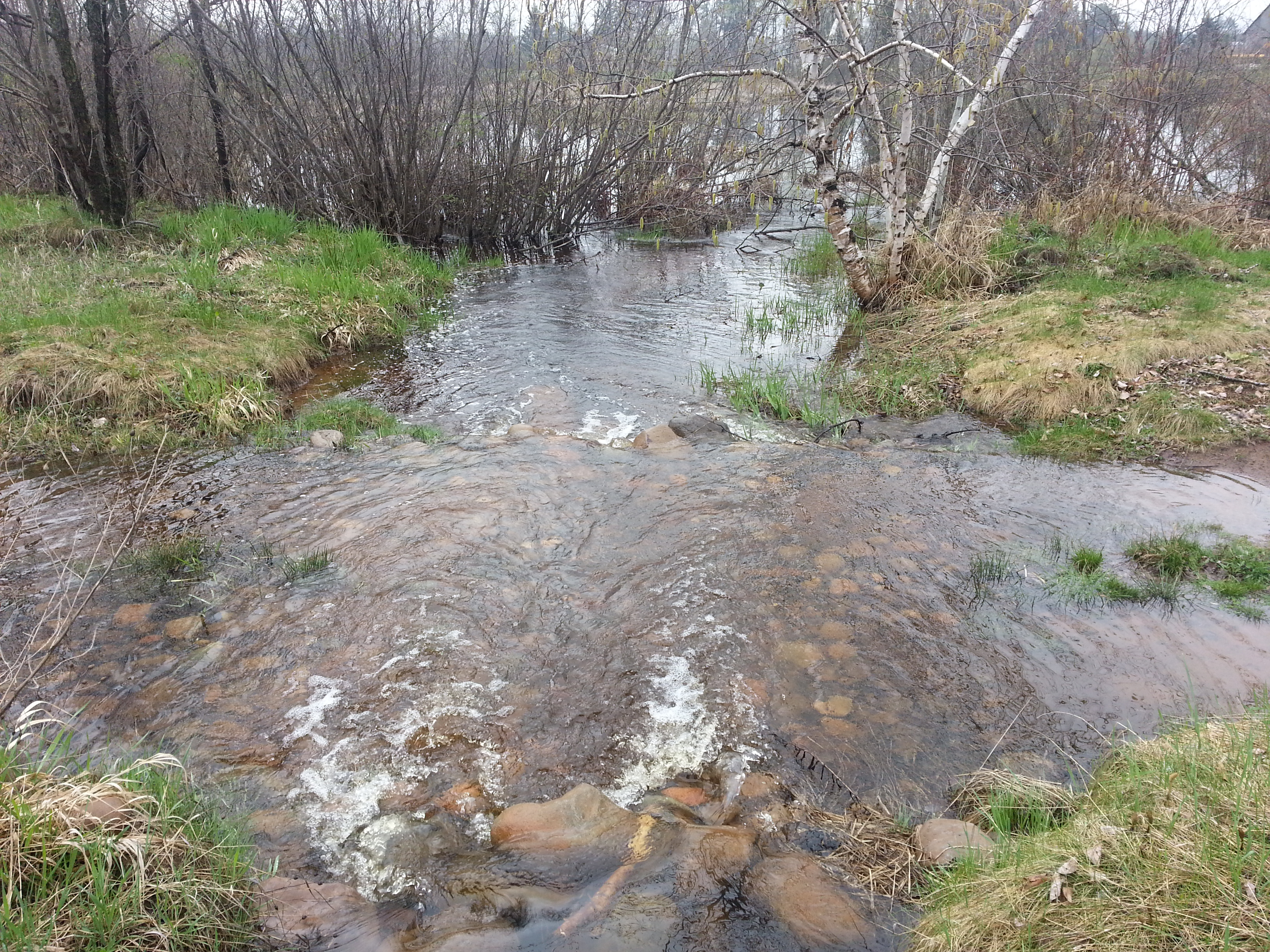 My family’s property is basically a sandy wetlands in a river basin. In wet seasons the area watershed runs right through it making a couple little ponds with streams connecting them. The ground has been soaked in the last couple of weeks by a significant snow melt and plenty of rain so today the water is high, the streams are full and overflowing the walkways and bridges. Canadian geese are swimming over what is normally dry ground. We had to choose our way carefully to avoid wading.
