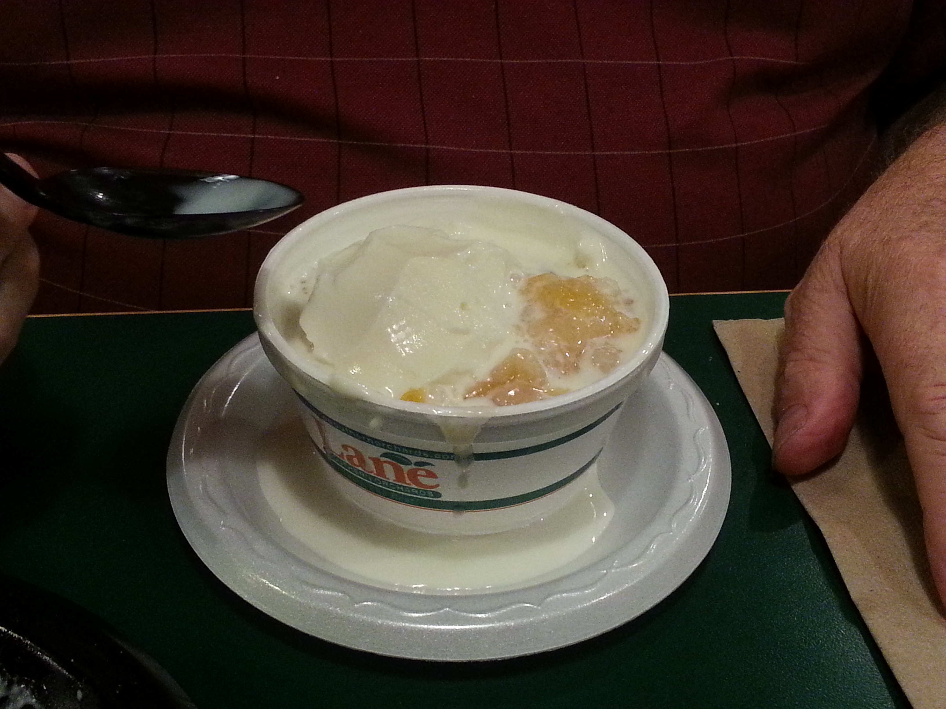 We had some vicious rainstorms during our travel that day and got to Lane Orchards just in time to load up the peaches and have supper at their cafe. My salad was so big I had to divide it into two meals to conquer it. And of course, we had to have peach cobbler, with ice cream. Of course. The husband’s only complaint was that there was too much peach and not enough cobble. I didn’t mind that.
