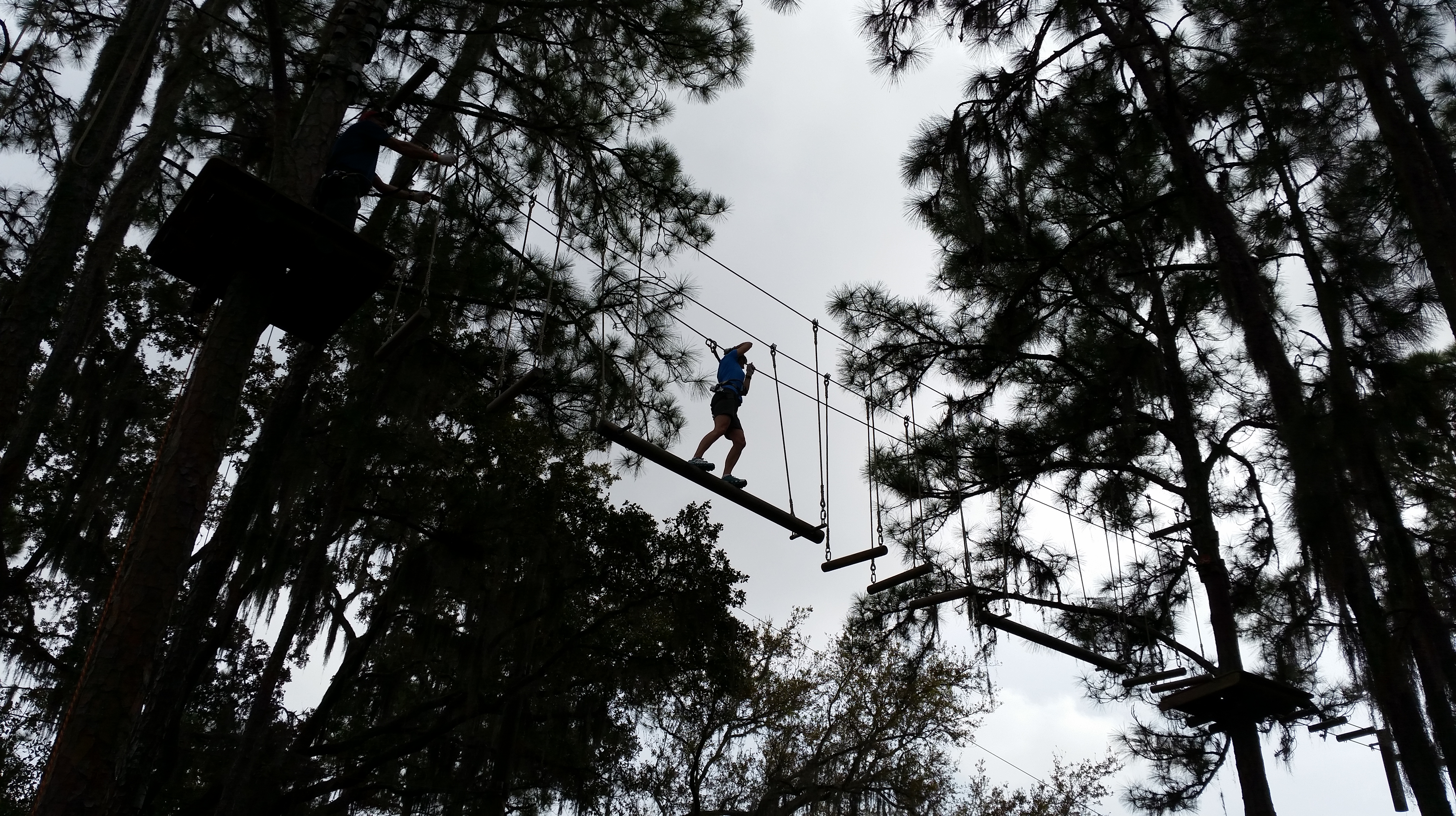The second day of my brother’s family vacation was also his wife’s birthday. She did not mind at all that the activity planned for that day was a zip line/ropes course high above the ground. Wouldn’t you like to test your youthfulness and defy aging in such a challenging way? Of course you would. It was awesome (watching them from the ground and taking pictures). That evening, in spite of terrorist mall threats, we had a superb evening meal at the new University Town Center – to celebrate the birthday and the fact that we had no significant injuries from the day’s activity. A fun, fun night.