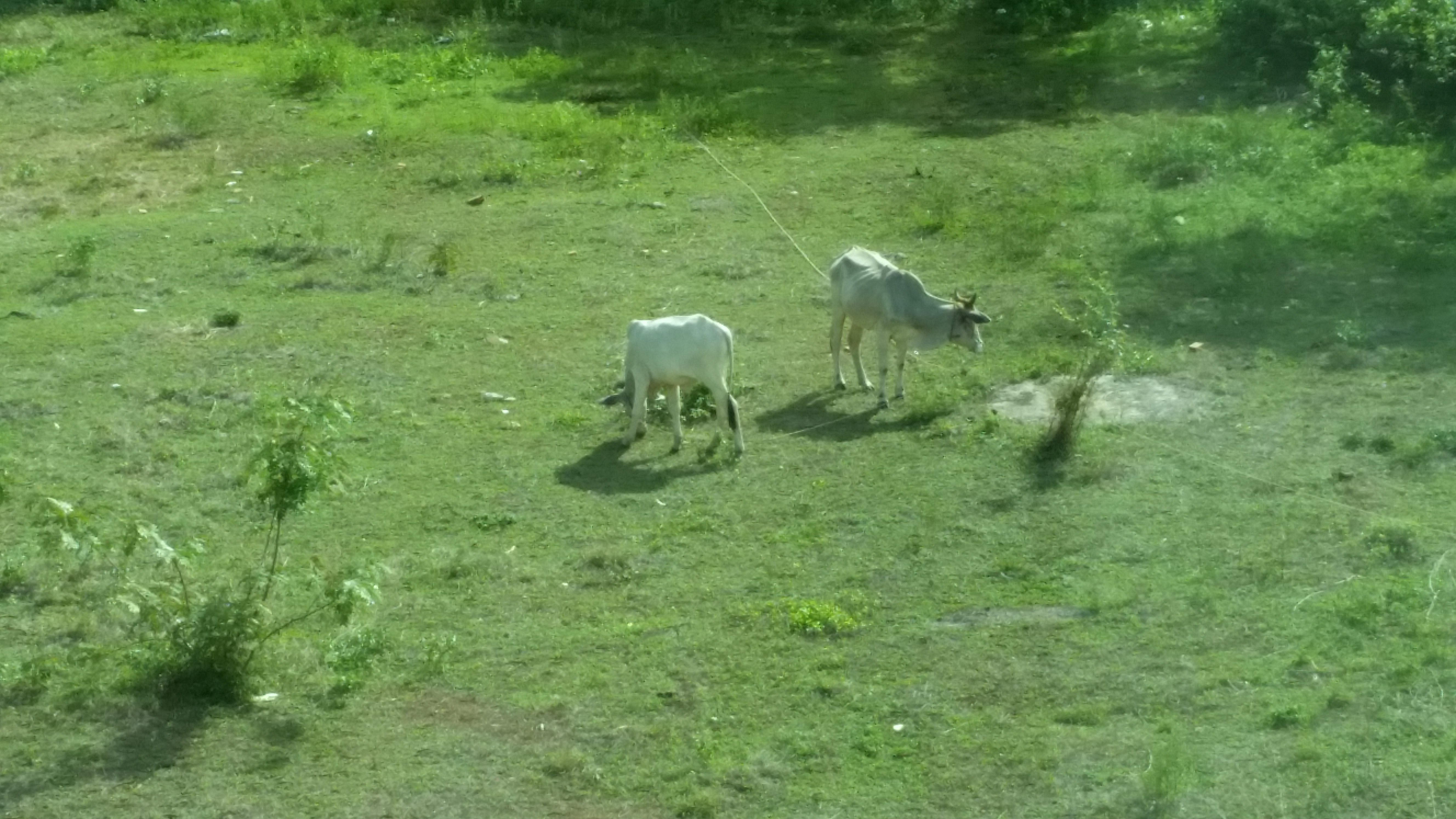 Another interesting show out our window was the rounding up of cattle. Four skinny cows were grazing in the yard outside the hotel and after the rain a man came to take them elsewhere. Some of them were tethered and kicked up their heels a bit when untied but all eventually followed the man out a gate and up the street, seemingly of their own accord.
