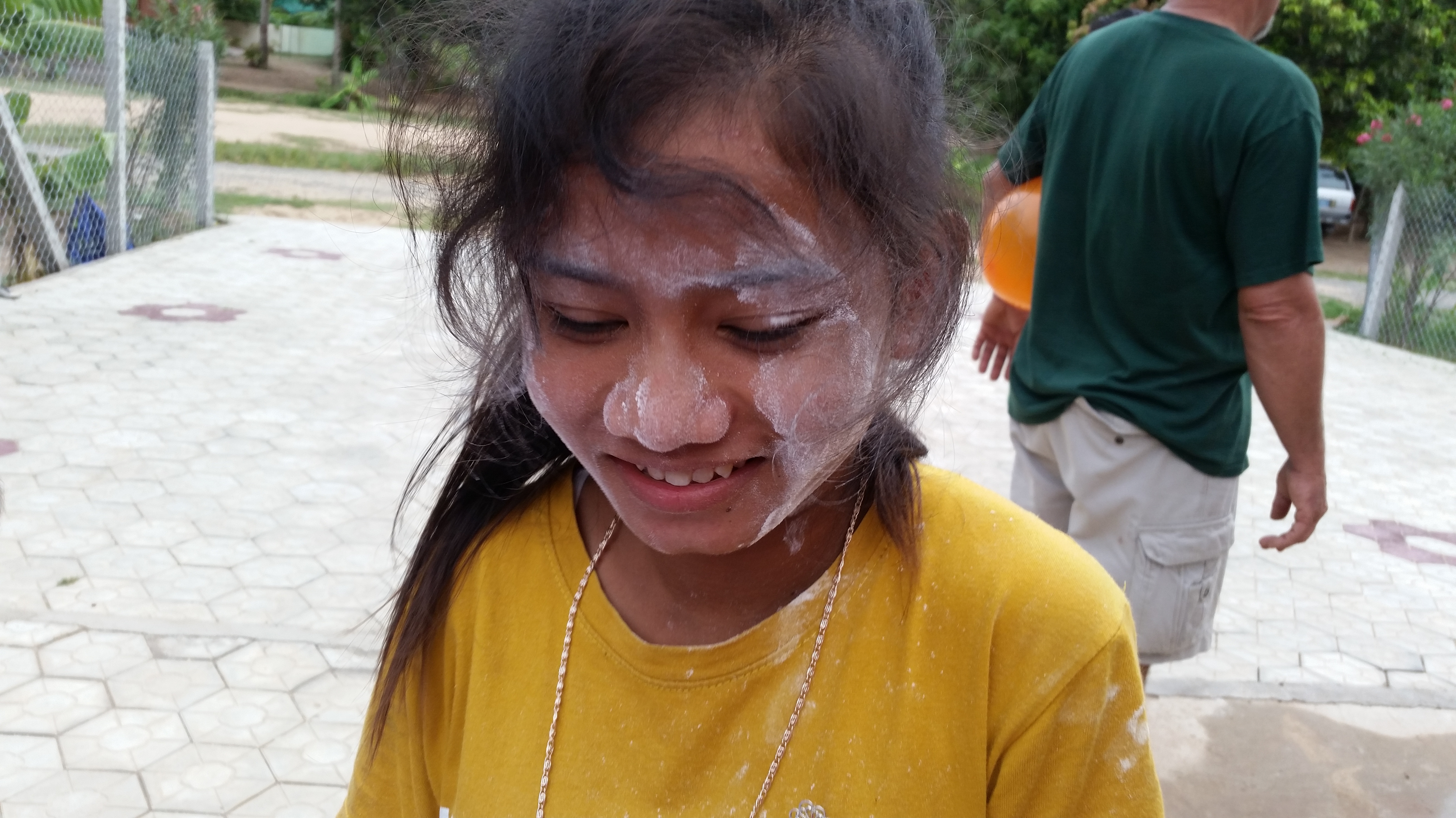 After lunch at Daughters of Cambodia Sugar and Spice, we went to Asia Hope for our last visit to the our sponsored homes there. This was the day I gave all the girls the jewelry craft that was donated by one of my friends. They loved doing this and soon were wearing the rings, pins, earrings, bracelets and necklaces they had made. They are very interested in looking like young ladies and having special things to wear. The ninja ball craft was repeated for PE5 home with possibly even more mess than we created at PE4 home. Flour and balloons everywhere, everywhere…