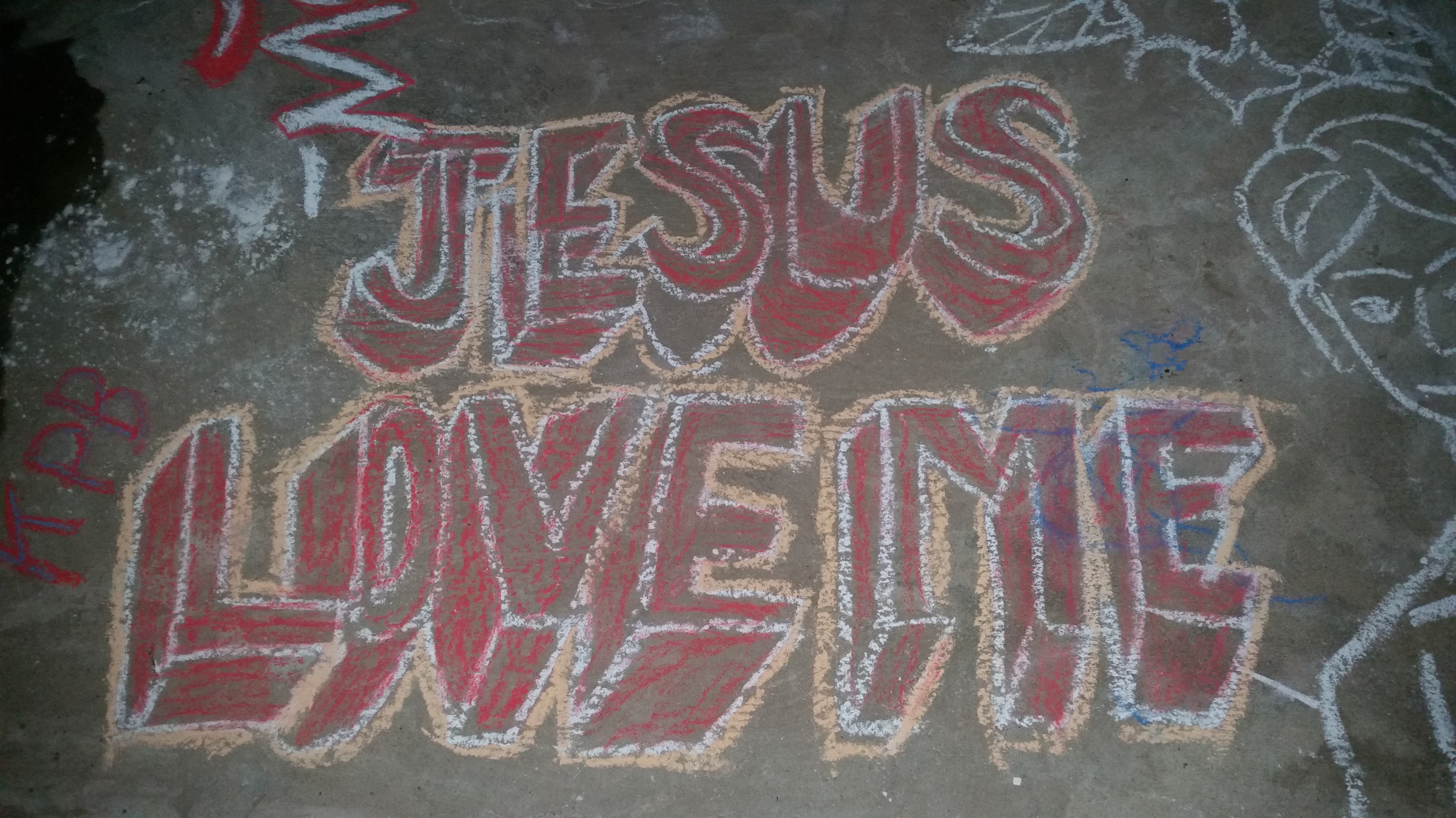 The kids made sidewalk art with chalk at their home