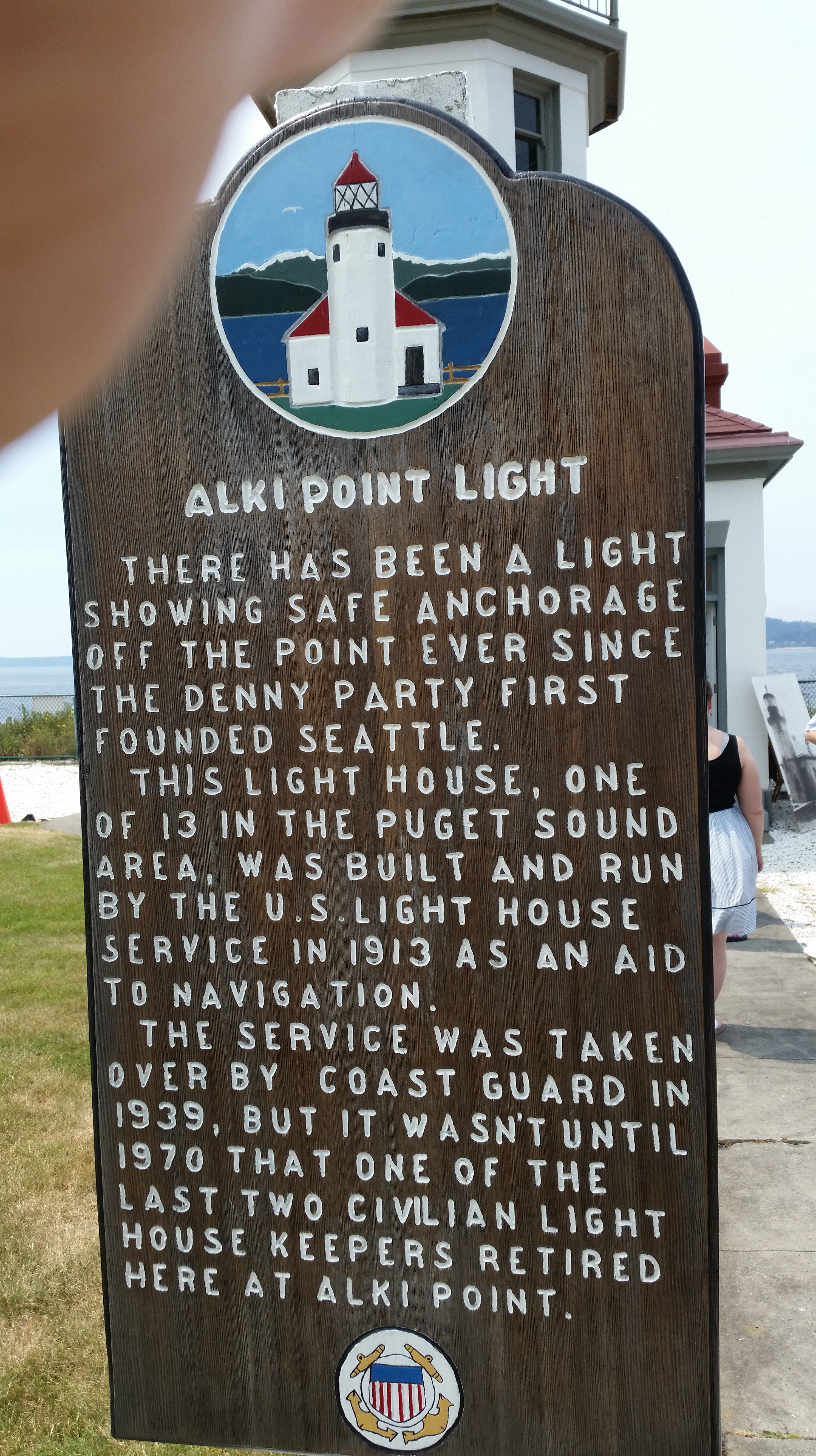 Alki Point juts out from West Seattle into Puget Sound near shipping lanes and early on the need was discovered to have a warning there. It started with one landowner who decided to hang a lantern on a pole each night – probably got tired of cleaning up his beach after shipwrecks. The land was eventually purchased by the government. As the story goes the price was $9,999.99, the amount that could be spent without legislative approval at that time. The property now has two residences that house Coast Guard officials and their families, the lighthouse and small storage buildings. It is fenced with a security system.