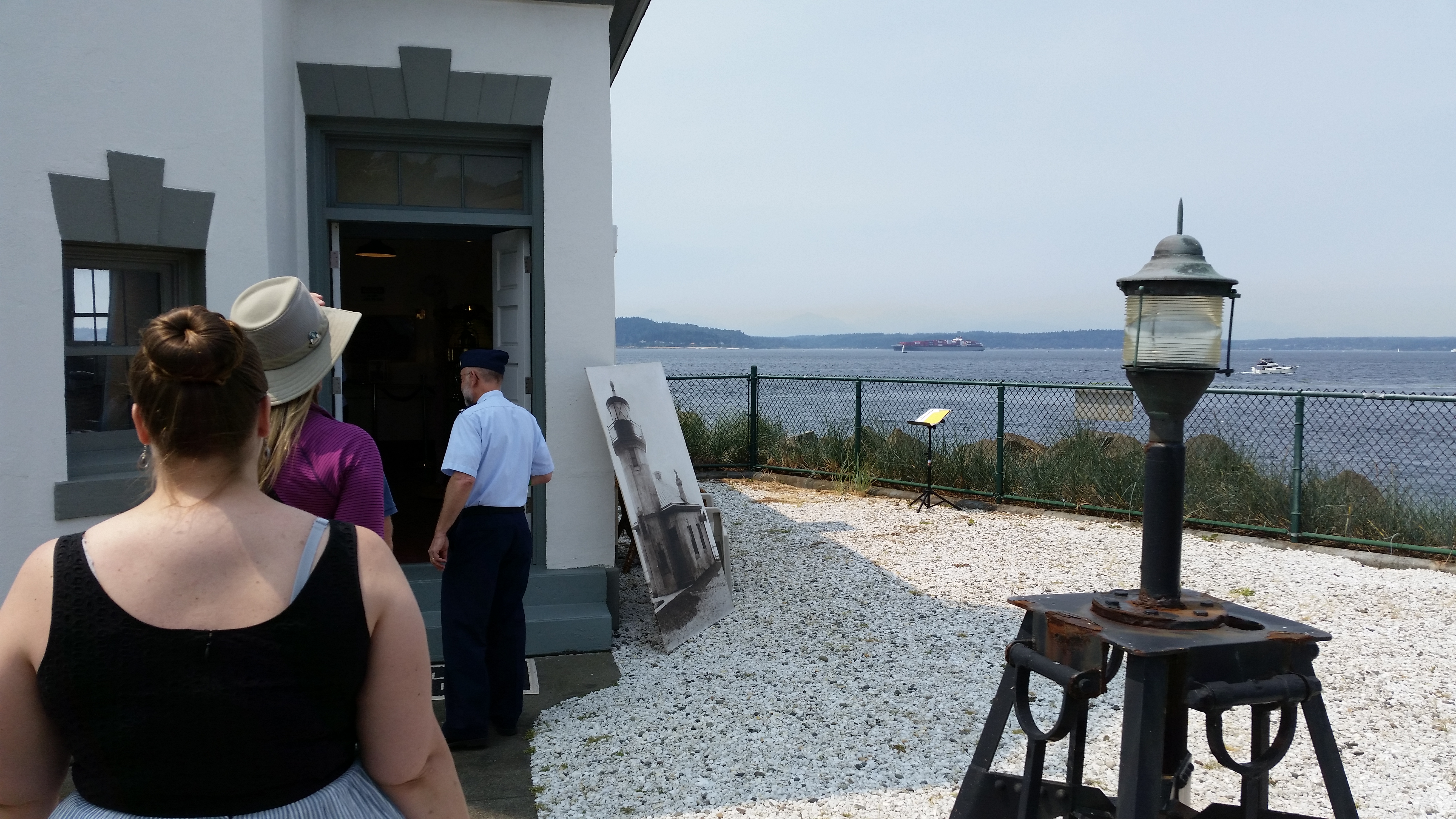 Lately I was able to visit the Alki Point Lighthouse. It’s in Seattle and I’ve tried to tour it before but was never there on the right day. Tours are on the weekends between 10 am and 3:30 pm, whenever a group collects, and on my most recent visit I was able to connect with one. The lighthouse is fully automated now, even to the changing of light bulbs, but the tours are conducted by a small cadre of Coast Guard Auxiliary who proudly usher people around and explain the historical aspects.