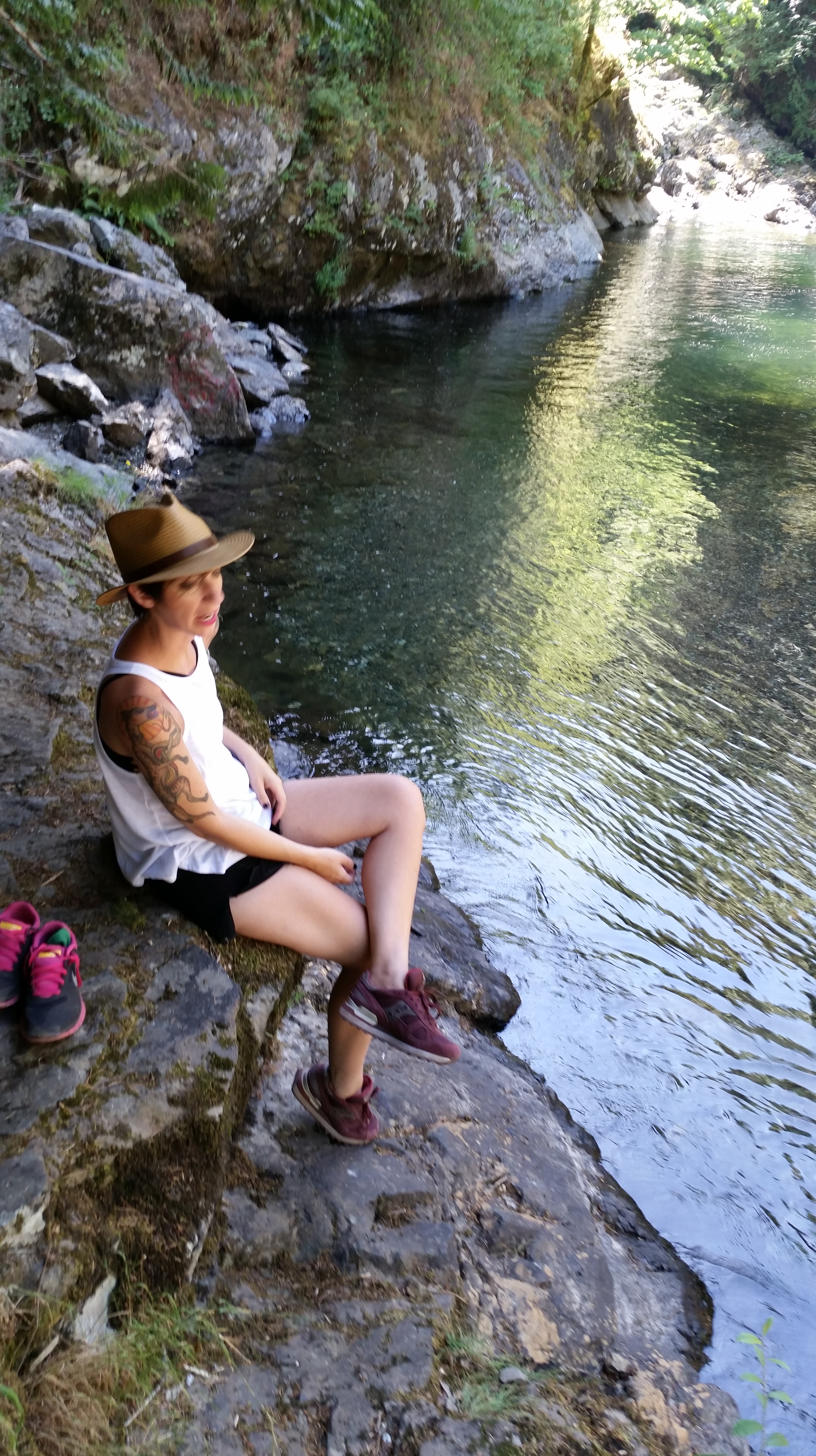 On the 4th of July this year, we (Mom #1 and Daughter #1) searched out a hike near Seattle just to get out of town and into nature. Some friends, another mother and daughter team, who lived in the area we visited went with us. We stopped to pick them up on the way. The destination was Twin Falls State Park. It is east of Seattle on I-90 and we probably did an hour of driving to get there, some of it through forests (beautiful!) and some of it on freeways through traffic (um… not so beautiful). There was not a lot of parking room at the trail head but we got there early enough to find a spot. My daughter had to buy a day pass with a tag for the car.