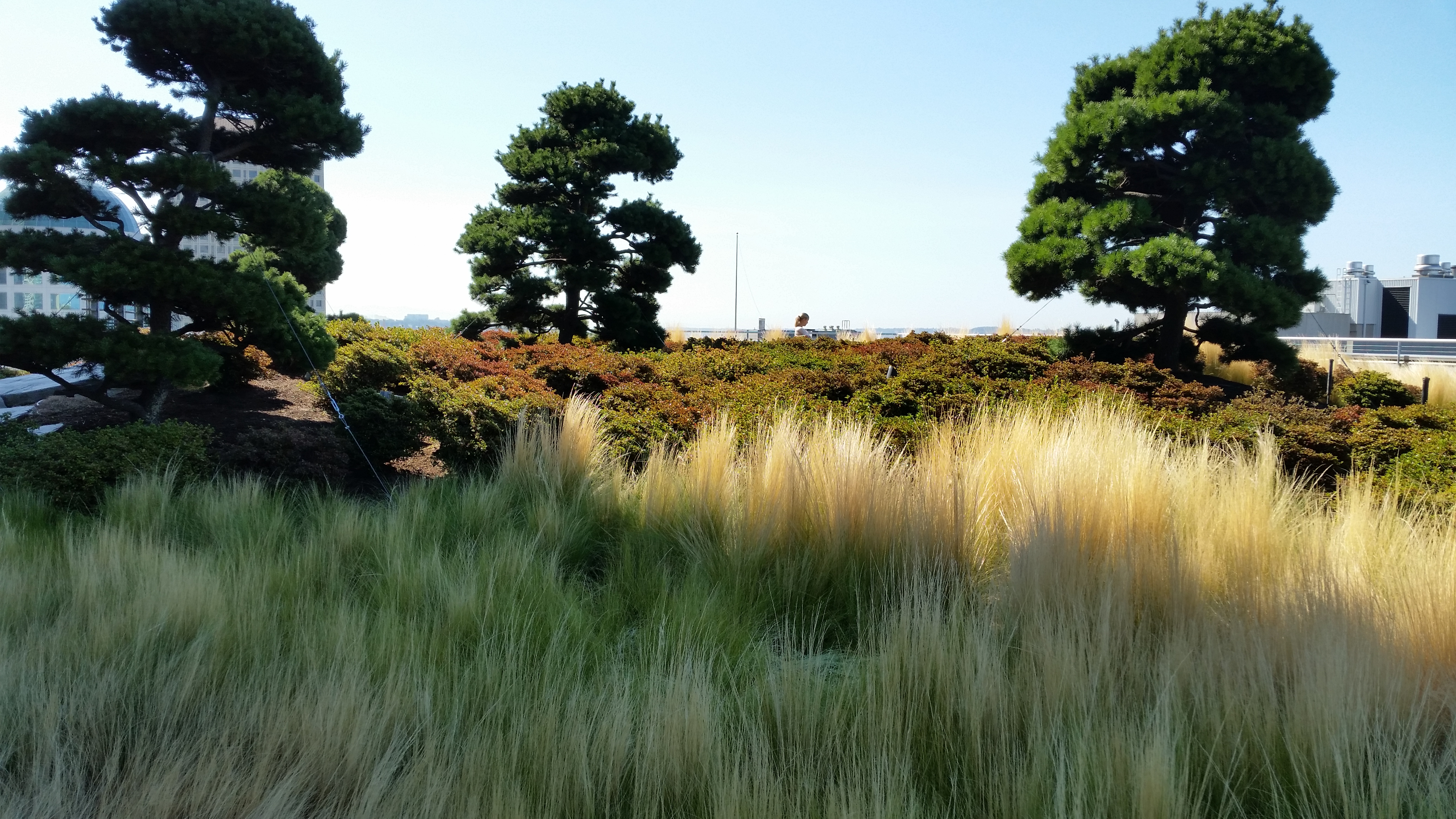 Who thinks of these things? To put mounds of dirt, trees and huge slabs of rock on top of a building probably isn’t any harder than making the building itself, but to think of doing it and making it beautiful is kind of an accomplishment. There is an almost unobstructed view of the city and the harbor in three directions. Today there is only a mild breeze, the sun is shining and the temperature is just right for enjoying the area. You do not need a pass to get there, but it is not crowded since it is mostly the people who work in the building who use it. I’m just sayin’ it is a great place to get a look at the city.