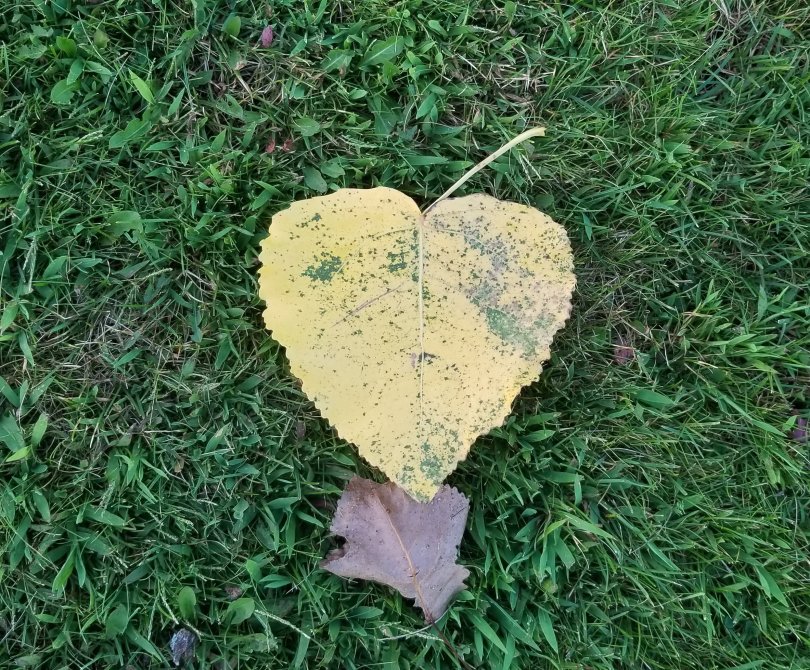 It’s mid-August in north Wisconsin. Are some leaves already giving in to Fall? I’m remembering all the times I have seen these seasons change. Summer is so short, and so sweet up here.Poplar hearts on the ground. I love being up north, in this place, in this moment. I love all the places that God has put me, but this one is in my blood and even thirty years in Florida didn’t leach it out.Water and reflection. The greenspace I walk goes through meadows and wetlands. Several ponds are connected with streams and marshes. This was Grandpa’s pond where he trapped minnows for fishing.Grandpa’s pond and Grandpa’s barn. They too will change, perhaps disappear, just like the seasonal flowers, just like the people who have farmed this land, loved these views and walked these meadows like I walk them now. Oh to know their thoughts…I love many things. I love small fires and running brooks. This one is almost unchanged from the days of my childhood, sixty years. I wonder how the water can keep coming from a source that never seems to empty. I think long and hard on the metaphor of “living water”.Two families of Canadian geese have grown up here. They wander the banks around the pond until I appear, then they fly to the water. Out there they look so peaceful. How easily they float. I can’t tell the parents from the goslings by their size any more, but their protective stance both in the water and out, give them away. By the size of the flock, they have done a good job.Up north, where sunset comes late and sunrise comes early. I am here and get to see both ends of these beautiful days.