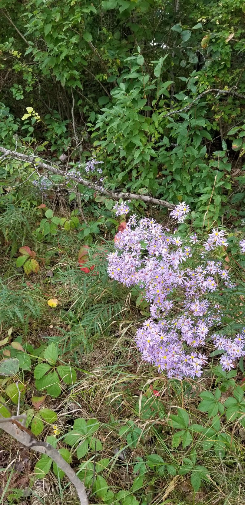The flowers of fall – we always called them wild asters – the last before a frost. Spots of purple among the greenery.