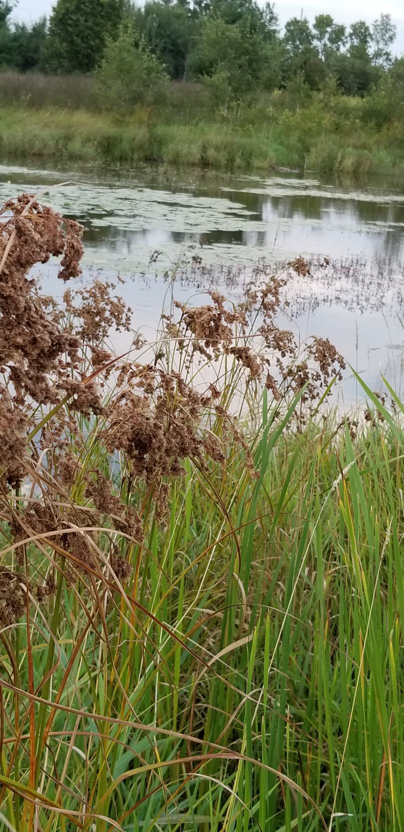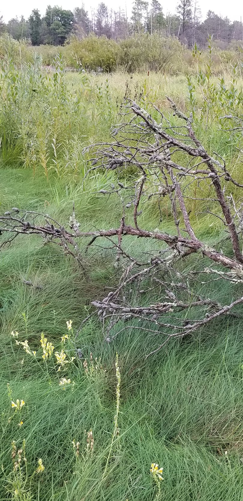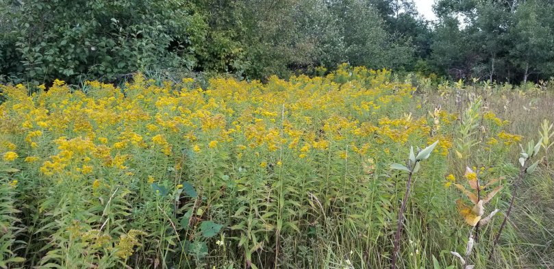 The meadow that was a sea of lavender is brown with dried Canadian thistle.