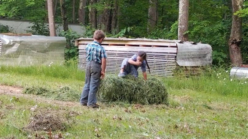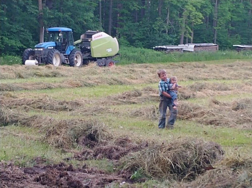 The eight year old boy saw the baler stop and immediately announced that his father had put too much hay in and had clogged the baler. He ran out and rescued the one year old while his dad crawled under the baler to fix things. He also gave his opinion on how many bales the meadow would yield and he was right. He had already been around enough hay fields to be knowledgeable.