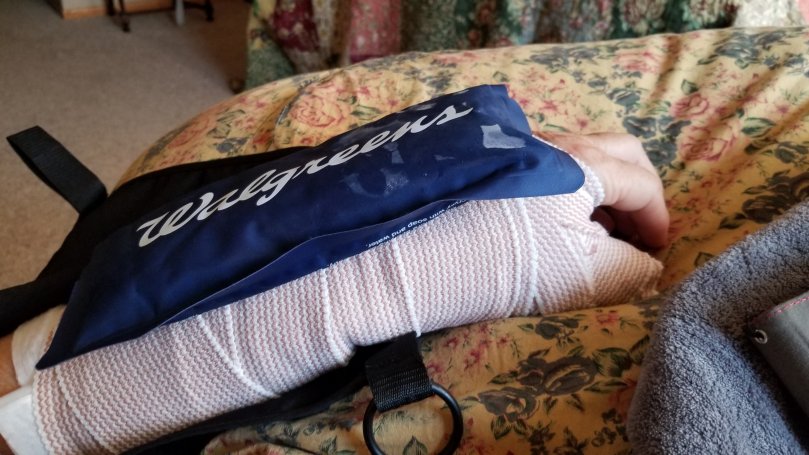 That first week I had far less pain than I had expected. It was similar to the way my thumb felt before the surgery. I even began using that hand for simple stabilizing tasks, even though the splint made it impossible to hold things. I remember one time when I was trying to get comfortable in my recliner and used both hands to push myself back. There was a significant jolt of pain that took several minutes of recovery time. After that I gradually became more aware of an annoying burning sensation under the many layers of cotton padding and elastic bandage.