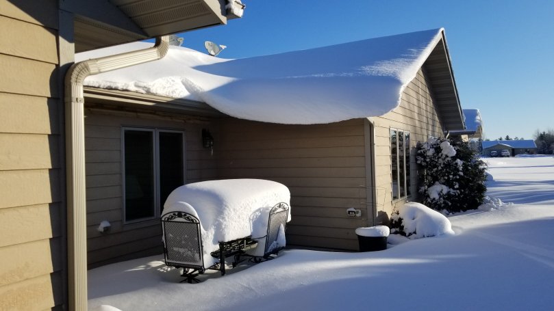 It slowly collects on the patio table like a giant muffin top. It hangs precariously off the eaves. It’s way over the tops off my boots as I try to walk about in the yard. That water can be turned into this kind of showy event is mind boggling to me. Water, wind and distance from the sun…