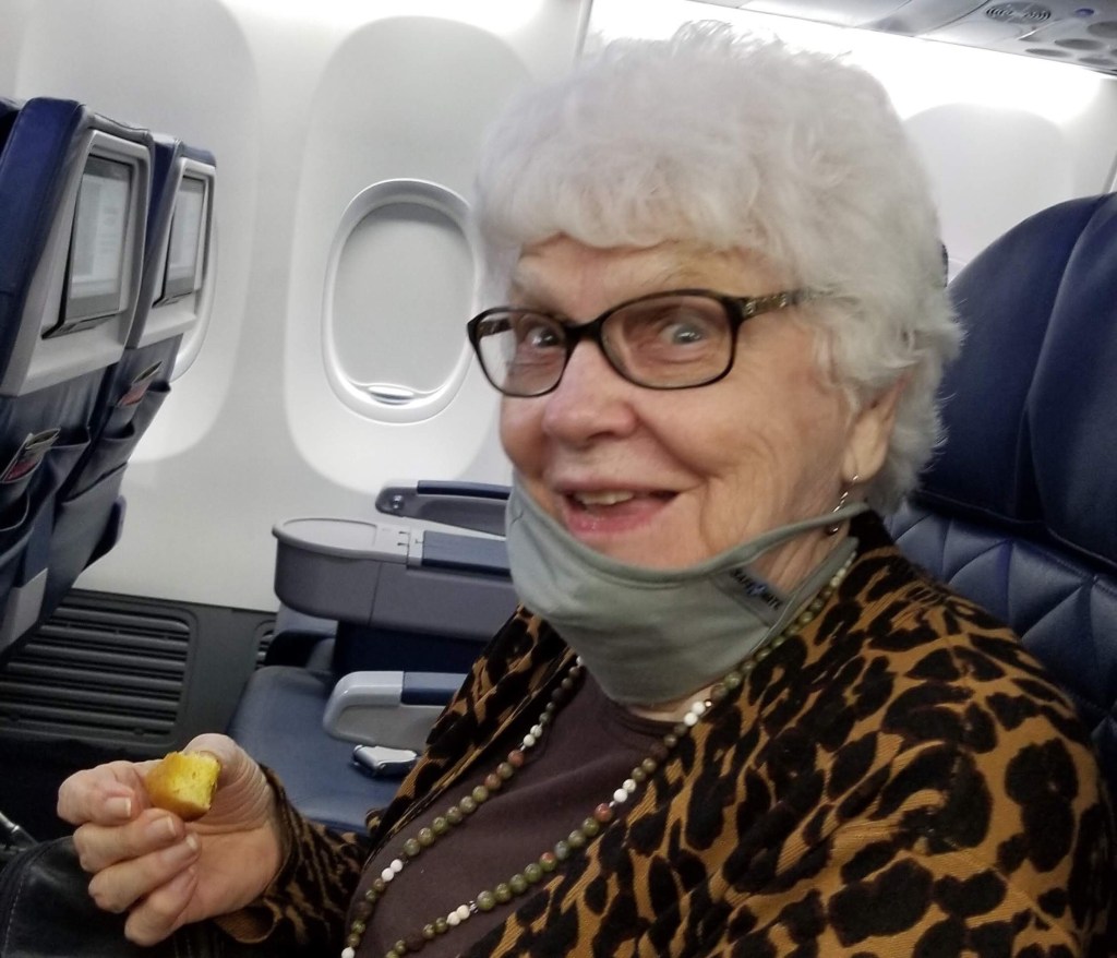 The trip down to Florida and back, flying first class, was kind of a birthday present from me, to me as well as to Mom, who was with me on this adventure. On the way down, it was too early to feel like doing anything except closing our eyes and occasionally lifting our masks to eat our snacks. On the way home we were more ready to take advantage of everything first class offered.