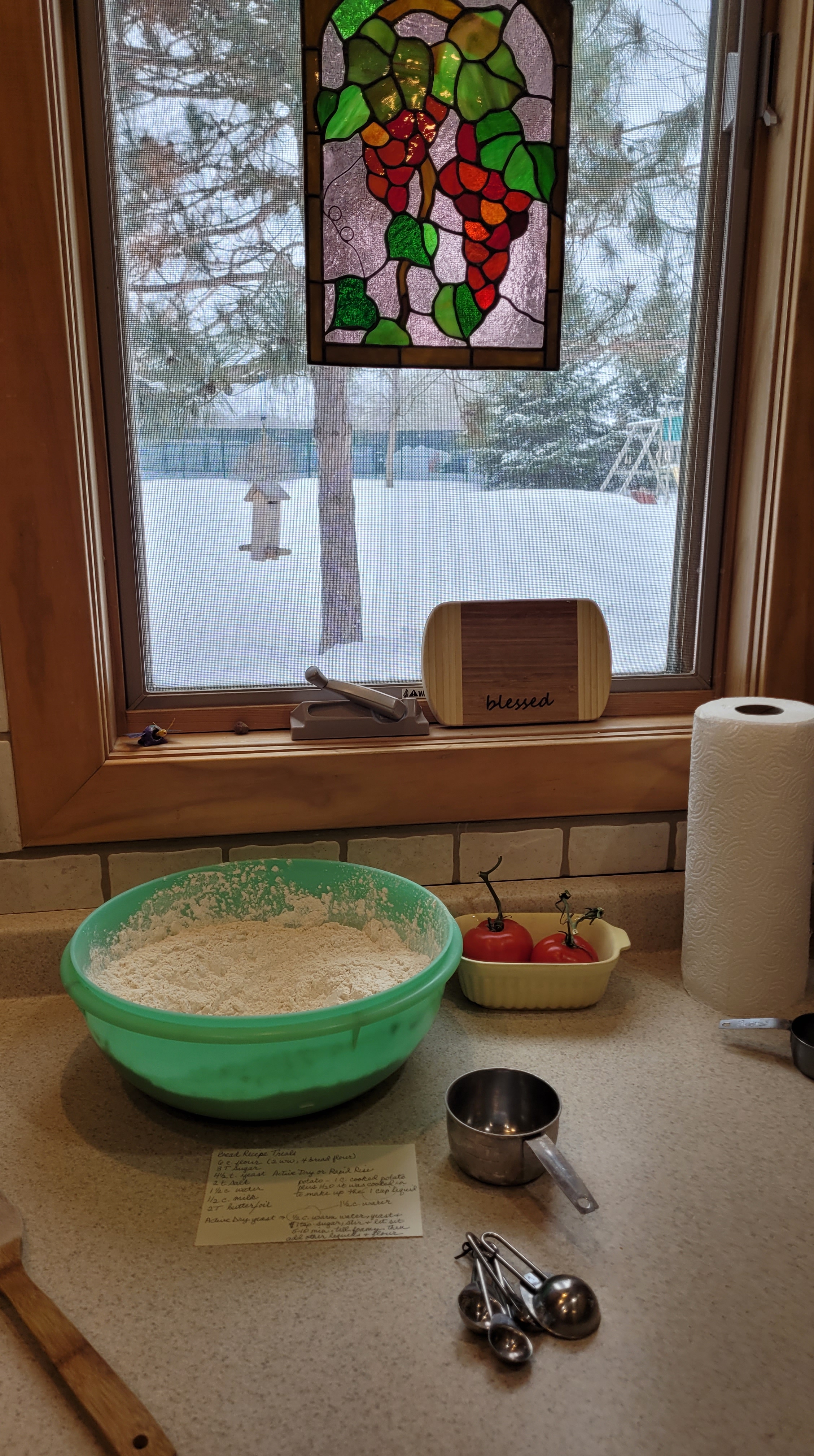 I’m also making bread. It’s in a warm place rising right now. I have a kitchen counter where I can look out a window at my bird feeders. I should say animal feeders because the squirrels and rabbits are there too. There is much about this time that is very nice.