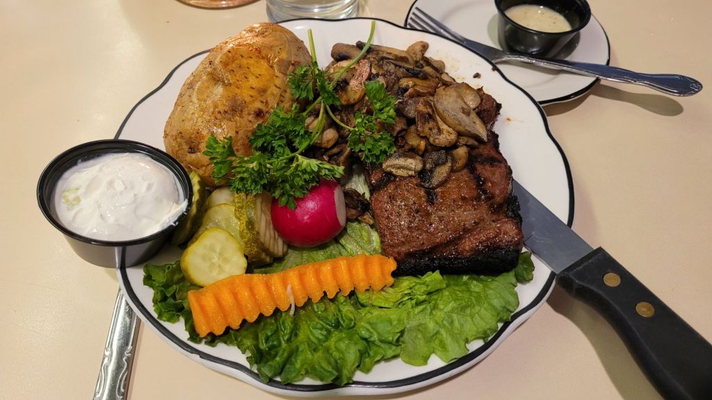 After a brief conclave in our leader’s room, we set out for a nearby eating place in Sister’s Bay. It was recommended by our hotel manager as being reasonably priced and well liked by locals. Sisters Bay Bowl had a small bowling alley with half a dozen lanes. No one was bowling but the restaurant was full, as was the bar.