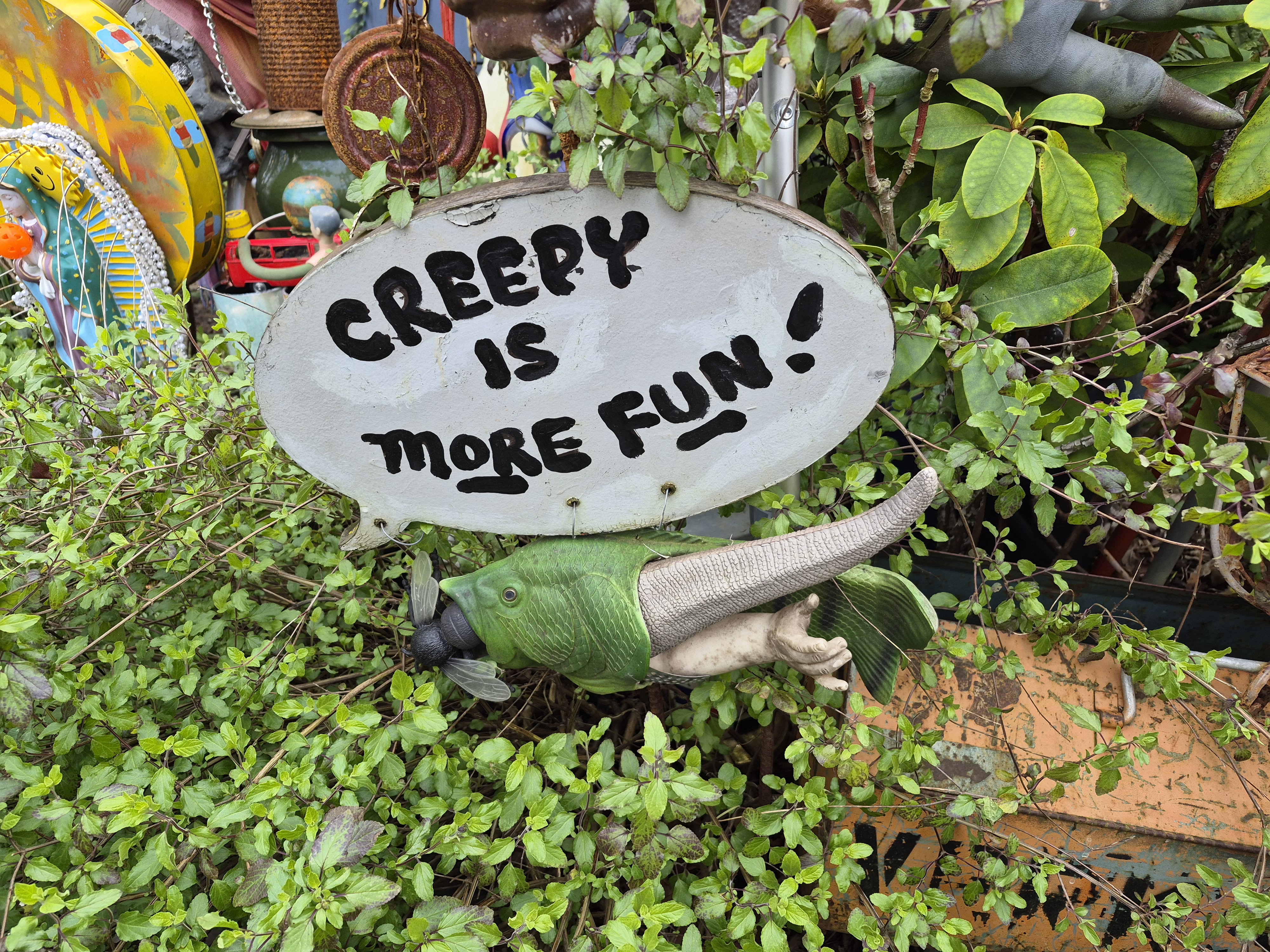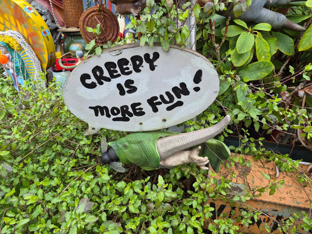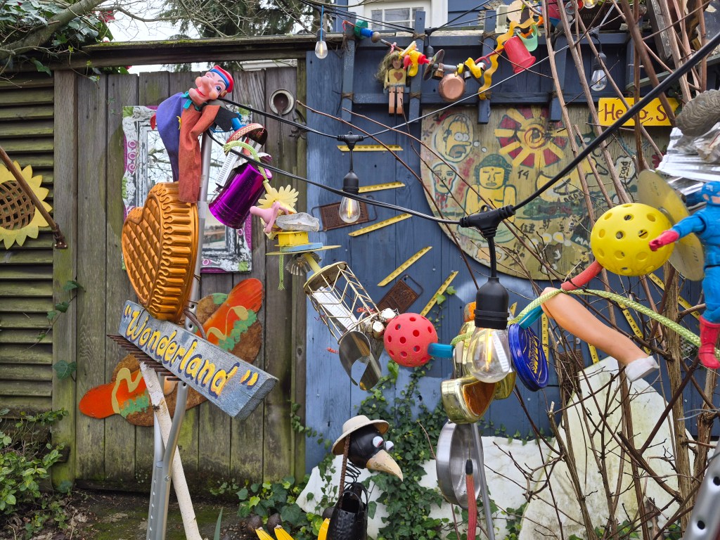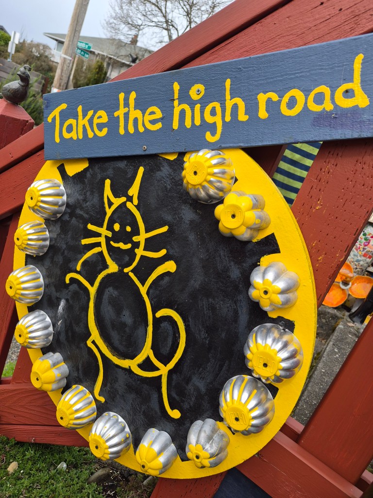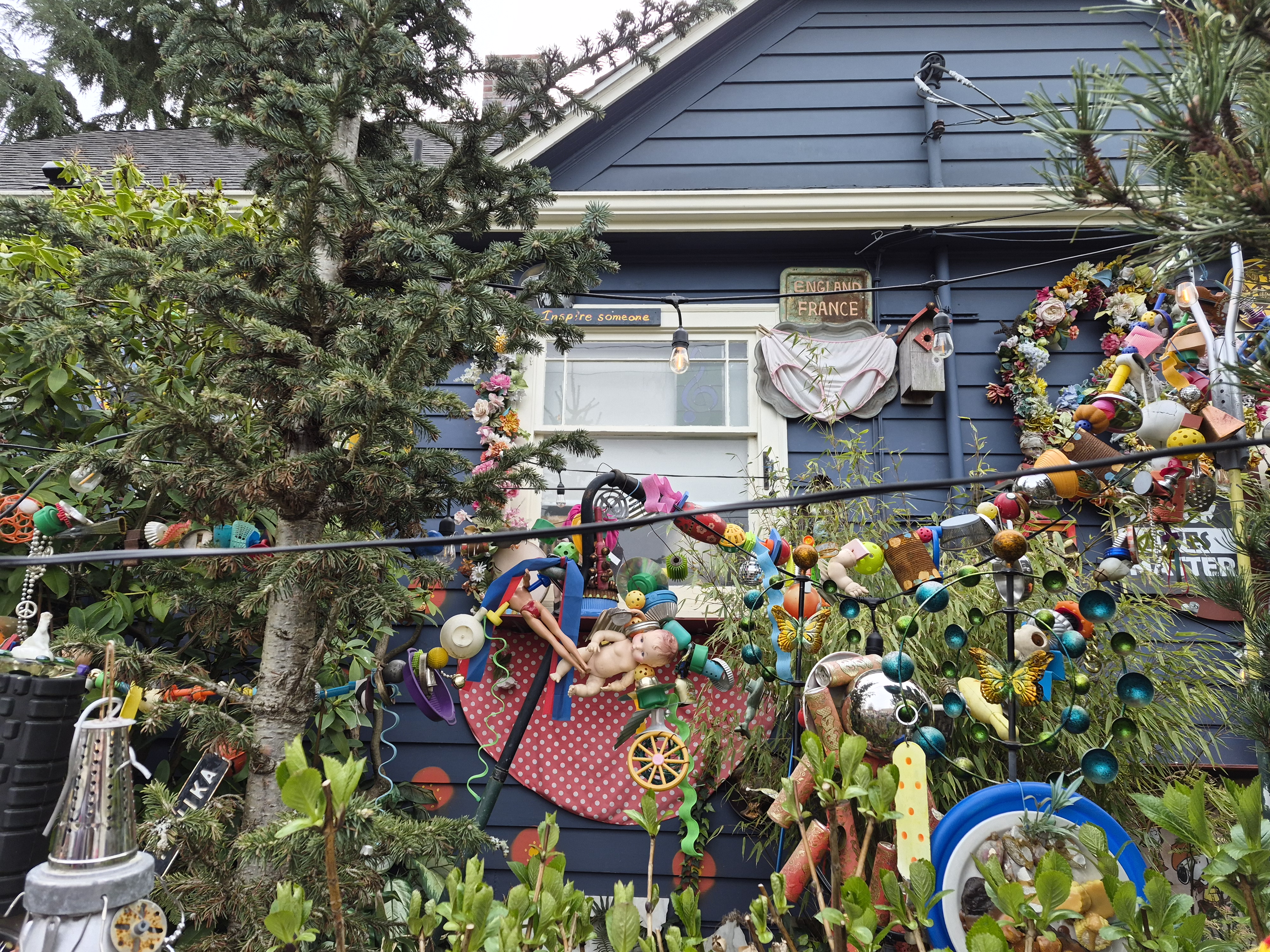 Just walking through some Seattle neighborhoods can be entertaining, as we found out. A very kind lady came out and explained her yard to us. People leave random things for her because they like her creative displays.