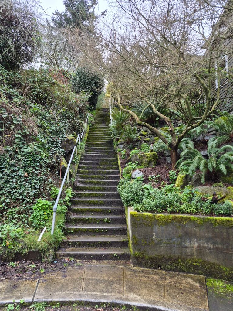 We expect Seattle WA to be a somewhat damp and overcast place. It is the pacific northwest and actually has places described as rain forests. But, this is the first visit in my memory where there has not been a dry and sunny day for over a week. I have not wanted to go into Schmitz Park where I’m sure it is muddy and slippery. I have not wanted to visit the staircases up the bluff. I have wanted to stay inside and be warm, for the most part. I do many things inside that keep me from being bored or disappointed.