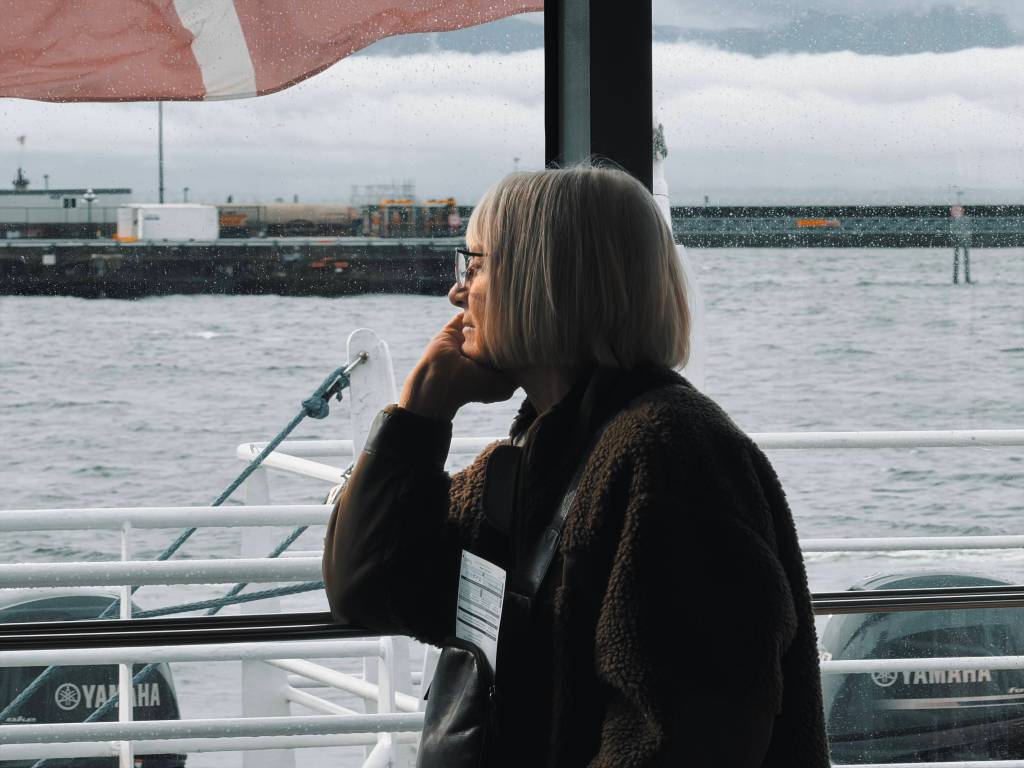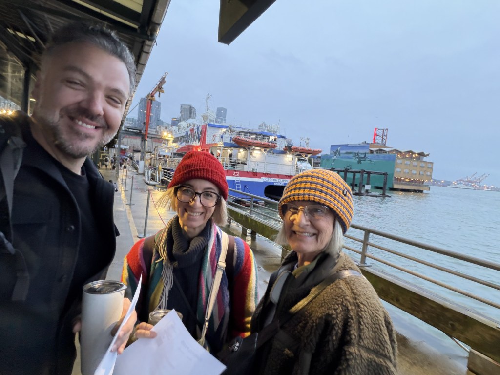 Our Uber arrived at 6:30 this morning. The driver was a quiet guy but very good at getting through traffic. (Also his car was a very pretty color.) Although it was raining again, we got to the port in Seattle with no trouble. So much had changed at the waterfront since the last time I was there! The viaduct is gone, completely replaced by the underground highway – a great improvement. We got our passports out and joined the short line at customs to get on the Victoria Clipper V. What a nice boat!