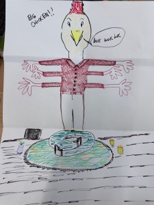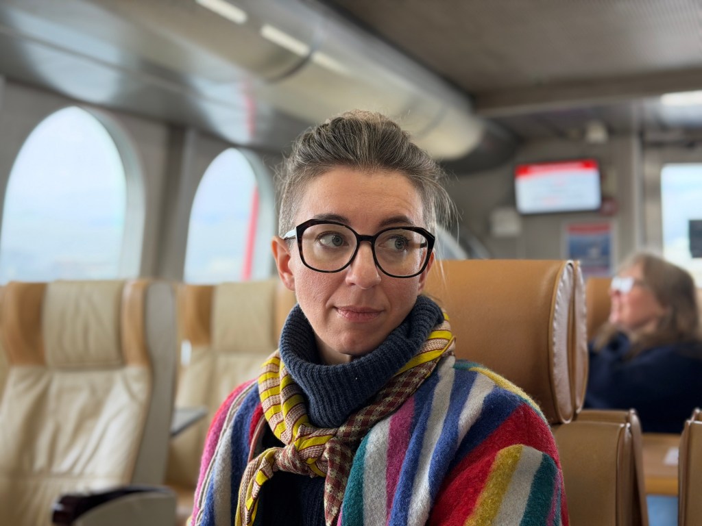 It was not a crowded space. We moved from our window seats to a table in the center of the room. We had breakfast from the clipper cafe during the 3 hour journey. For fun, we drew a collaborative picture and here it is. We each only saw our part when drawing. The boat travels at 30 knots, which is pretty speedy for a ferry. It was a pleasant and well conducted trip.