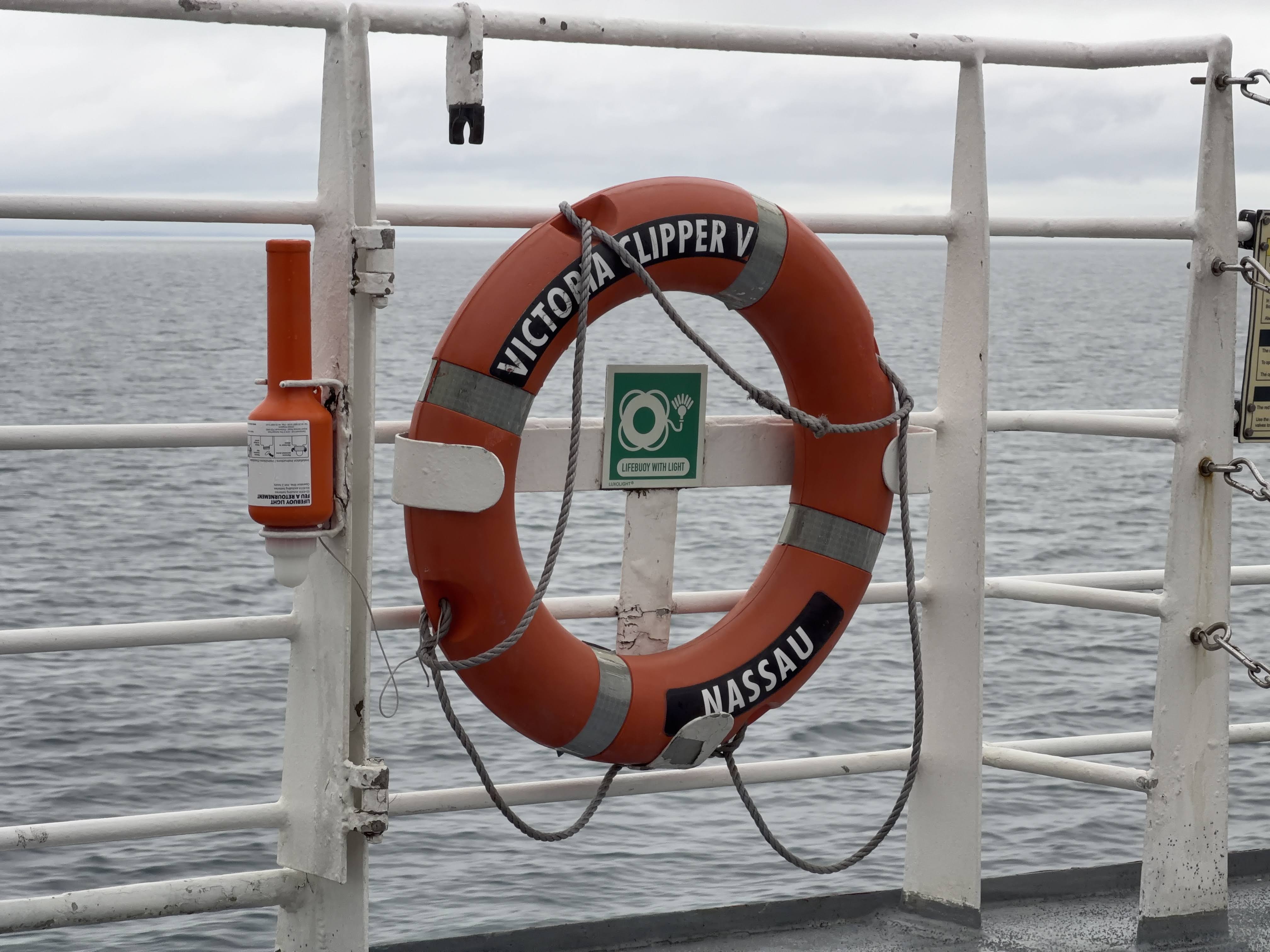Our Uber arrived at 6:30 this morning. The driver was a quiet guy but very good at getting through traffic. (Also his car was a very pretty color.) Although it was raining again, we got to the port in Seattle with no trouble. So much had changed at the waterfront since the last time I was there! The viaduct is gone, completely replaced by the underground highway – a great improvement. We got our passports out and joined the short line at customs to get on the Victoria Clipper V. What a nice boat!