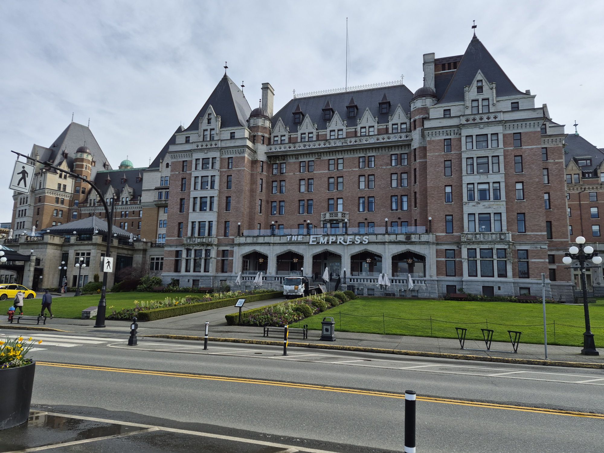 There are beautiful, historic buildings all along the port. The first one that really got our attention was the Parliament Building. Victoria, on Vancouver Island, is the capital of British Columbia, so the government building was important to them. It had no entrance fee and we went in to look around. It was classic, good quality, beautiful architecture and that pretty much applies to most of the city that we have seen so far.