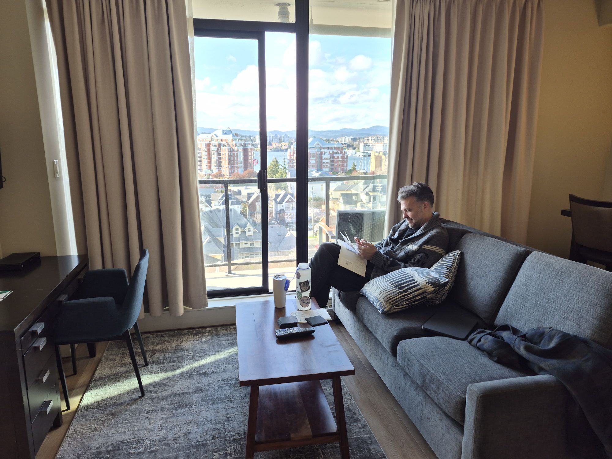 Our day started after a good night at the Oswego Hotel. It is one of many hotels that are within walking distance of the harbor. Our two bedroom suite on the corner of the ninth floor had views in two directions. Mountains with snow were visible out my bedroom window and the harbor out the sliding door in the living room. The Oswego is an excellent hotel and I highly recommend it.