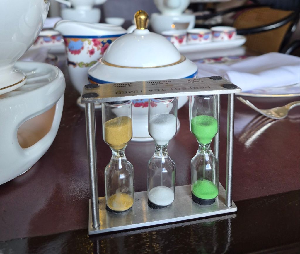 The Empress Hotel is old and grand. We were escorted to the perfect table for us, in a corner away from the buzz of the crowd. We each chose a tea and our waiter brought the pots, put them on the warmers and started the three minute timer. There was the expected amount of pomp and elegance. I felt special because when do I ever get cucumber sandwiches at home? The desserts were very elegant. It was high tea and not really a meal, but there was enough that I felt full. I’m not sure what everything was but I ate it all.