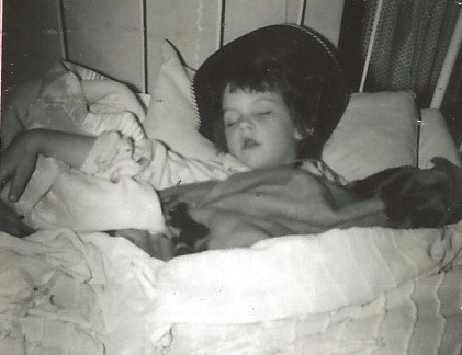 My favorite time to make up stories was after being put to bed at night. We children always had an early bedtime, before we were very tired, and our imaginations never let us just lie there being bored. I would put all my gear on over my pajamas – the chaps, the vest with the star, the gun belt and six shooters, and the hat – and get my plot going. By the time I was shot and wounded, having fallen dramatically in my bed the street, I was usually asleep. That’s the way it was, back then, just sayin’.