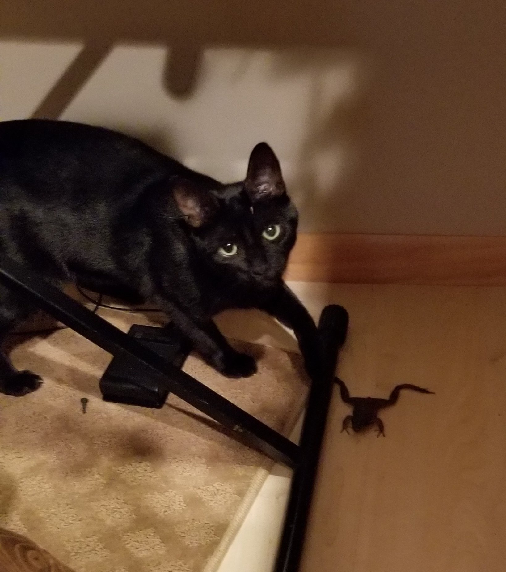 She went outside one day, where she usually sits in the sun on the patio. I left the door open for her since the blackbirds sometimes chase her and give her a scare. While I was not paying attention, she brought in a bird, which I did not notice until it started flying around the dining room. It hit the window, trying to get out, and Shadow and I both scrambled to get it first. I won and released the poor bird outside. It’s not that I like her playing with birds and torturing them, but it made me aware of how much she had recovered. I felt happy that she was a cat again, doing what cats do. The constant scratching and licking has stopped. Her fur is slowly growing back.