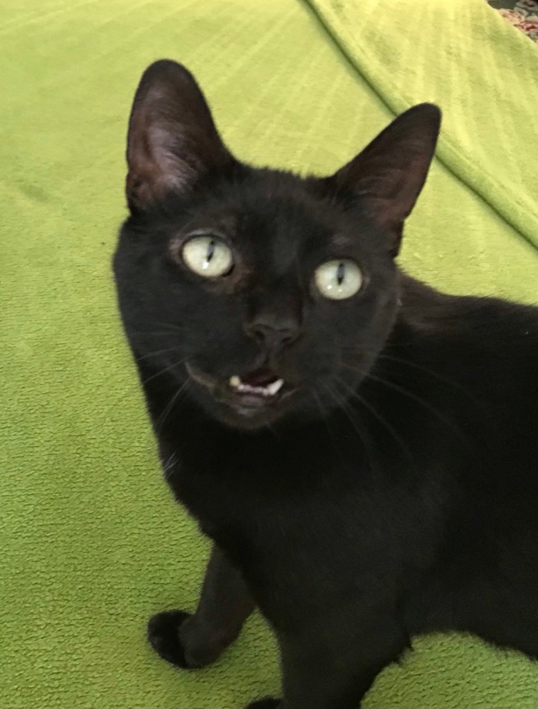 I’m sorry I couldn’t come up with a more original name for a black cat than Shadow, but as it has turned out, my Shadow is aptly named. She follows me around the house like a dog, choosing her spot near where I am working (and sometimes on what I’m working with). She prefers my lap, but if that’s not available, she will sit on the back of my chair, or watch my computer screen with me as I type. She is extremely relational.
