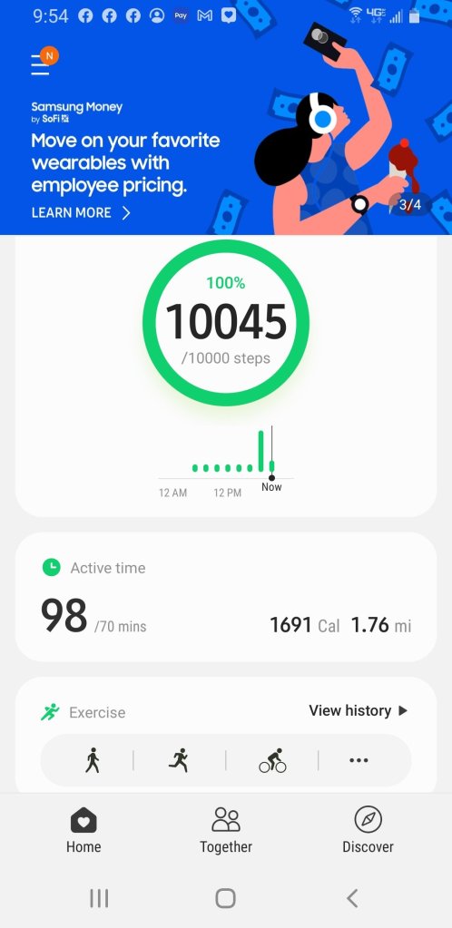 First, I lowered my daily expectation to around 8,000 steps, which I have heard is just as beneficial as the higher number. Who decides? I think I heard it was a somewhat arbitrary number that sounded good to someone in charge of a program.
