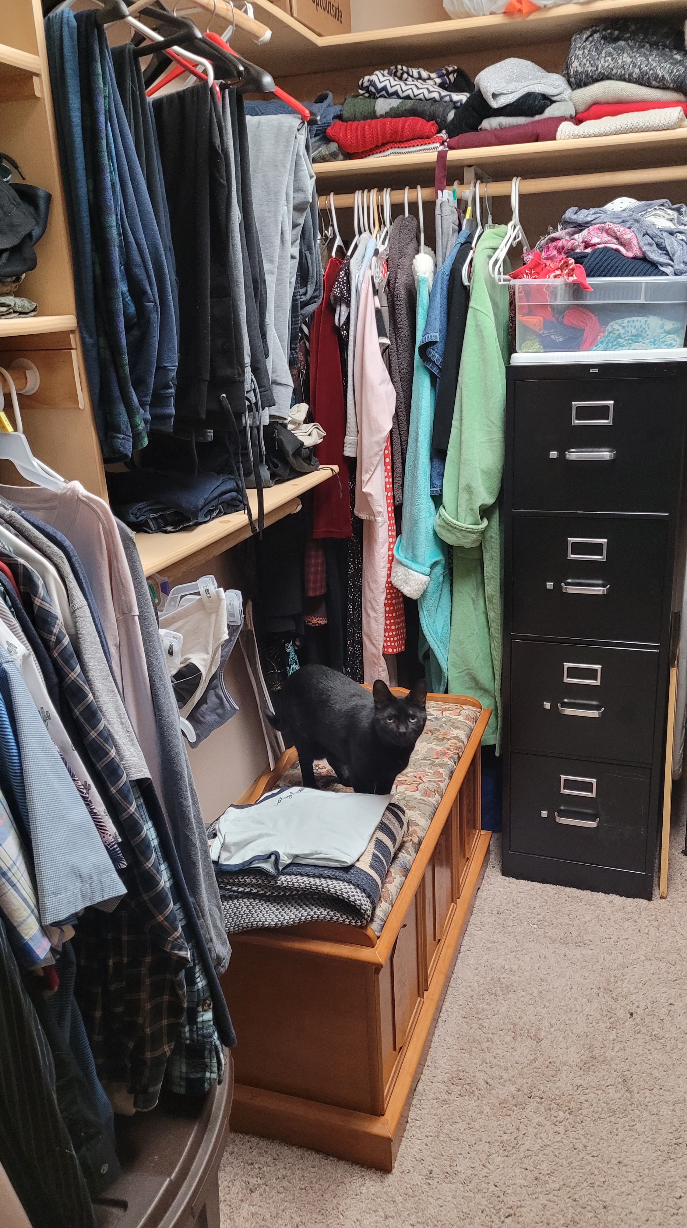 The family resource center where I volunteer has recently moved to a new facility. In one of the new rooms we plan to have a boutique for new moms. It will have everything they need for babies, and young children. It’s presently full of bags of donated clothing, blankets, diapers, furniture, clothes racks, boxes of hangers. There was a narrow path through it, but it was a little treacherous.