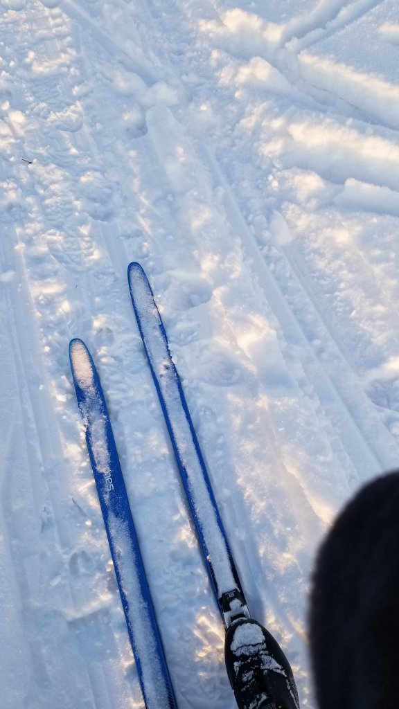 I was especially considering that when I went outside on Friday, New Year’s Day, to take a walk in the snow. It was a perfect snow day. There were a couple of snowmobiles being noisy out in the wetlands. Seeing them zip around made me remember the days when I used to ski, and how much easier that was than plodding around in my boots. I wanted to ski again but wondered whether it was a bit too risky. If I fell and broke something it would really impact others in my life. Recent experience had made that pretty clear.