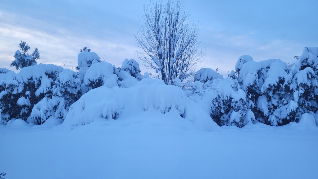 Anyone who listens to the weather reports for the U.S. now knows who “Dorothy” is. It snowed last night. I have to say I much prefer snow storms that come at night while I’m asleep. The result is a stunning morning.
