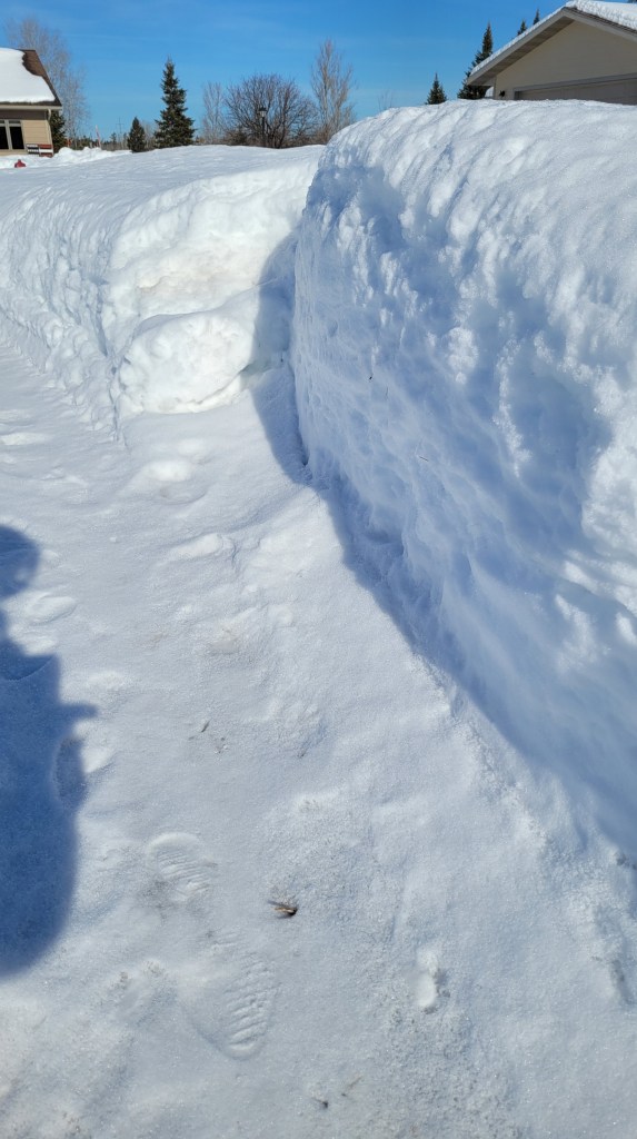Winter is struggling. It knows its days are numbered, but it doesn’t want to give up without a fuss. I know it likely has another storm or two to annoy us, but the longer days (yay! thank God!) and the higher trajectory of the sun are doing their job. We still have two or three feet of snow on the yards but there is melt taking place every day.